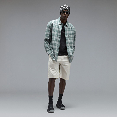 Hafif, iplik boyalı ekose pamuklu flanel kumaştan üretilmiş ekose gömlek. Ön ve manşetlerde markalı düğmelerle kapatılan gömlek, klasik gömlek yakasına ve mat işlemeli logolu fermuarlı göğüs cebine sahiptir. Uzun ömürlü yapı ve dayanıklılık için çift ve üçlü dikiş kullanılmıştır.