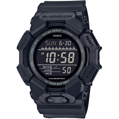 Tamamen siyah renk tonlarına sahip G-SHOCK GD-010-1A1DR, zarif tasarımı ve üstün işlevselliğiyle göz alıcı bir seçenek sunuyor.Dijital GD-010-1A1DR, dünya saati ve kronometre gibi pratik özelliklerle donatılmış olup, büyük ve kolayca okunabilen ekranı ile geniş kasasıyla dikkatleri üzerine çeker.Ön buton aracılığıyla parlak LED ışığa hızlıca ulaşabilir ve karanlık ortamlarda daha iyi okunabilirlik sağlayan LED aydınlatma özelliği sayesinde, saatin kadranını rahatça görebilirsin.200 metreye kadar suya dayanıklı tasarımı, su altı aktiviteleri için güvenli kullanım sunar.Biyo-temelli reçine malzeme ile üretilen ve 10 yıl ömürlü bataryasıyla uzun süreli kullanım sağlayan bu G-SHOCK, çevre dostu özellikleriyle öne çıkarken, şık tasarımıyla da beğeni toplar.