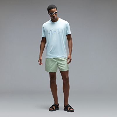 %100 geri dönüştürülmüş polyesterden üretilen bu 43 cm lik şort, su geçirmez bir kaplamaya sahiptir ve nemi hızla uzaklaştırarak suda ve karada kuru ve ferah kalmanızı sağlar. Nefes alabilen tam file astar, elastik büzgülü bel bandı ve yan yırtmaçlı etek ucu konforu optimize eder.