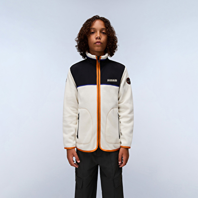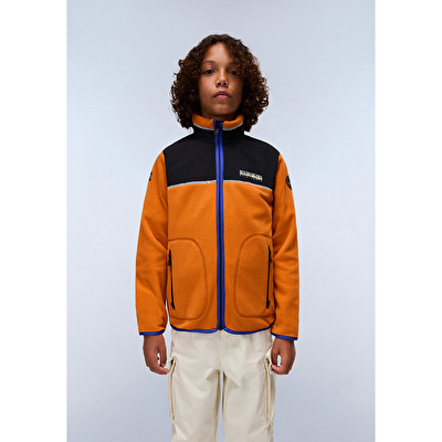 Retro bir tasarıma sahip olan Arbari tam fermuarlı çocuk polar, fermuarlı cepler, çene koruması ve imzalı Napapijri yamalarıyla tamamlanmış, sıcak ve rahat bir orta katmandır.